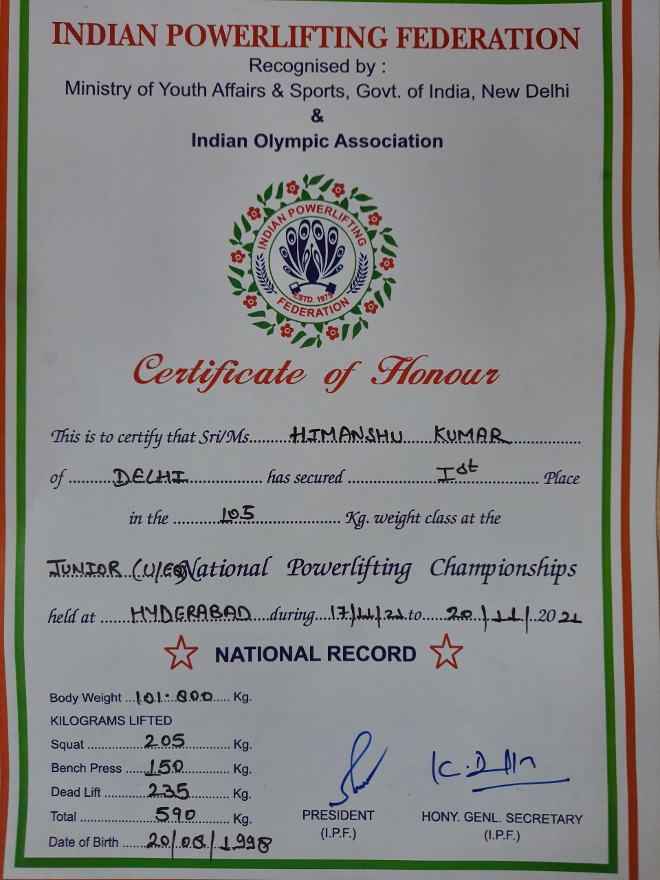 Bses Delhi On Twitter Himanshu Kumar Of Bses Has Won A Gold Medal At The Junior National Powerlifting Championships Held At Hyderabad Recently In The 105 Kg Weight Class His Spectacular Performance